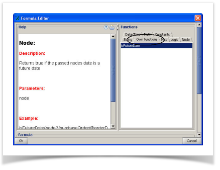 A function can be used everywhere within the rule engine (condition expression, nls text). A predefined set of functions already exists.