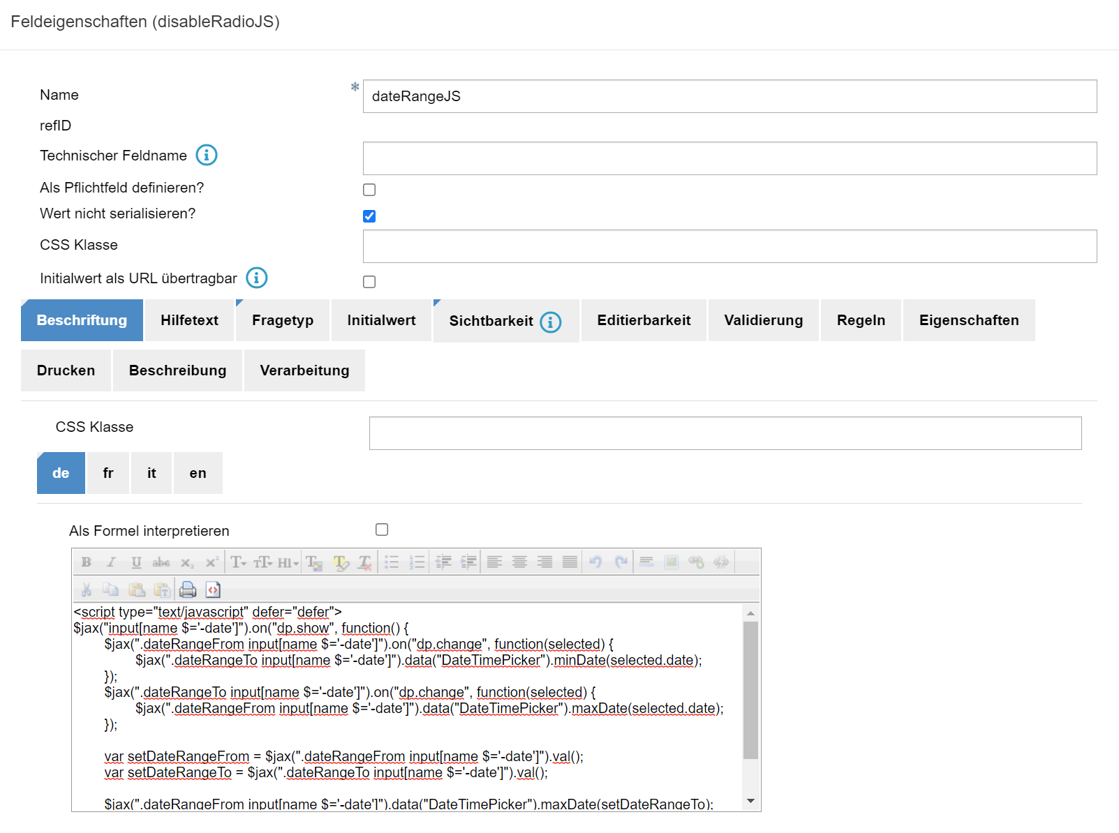 $jax(".dateRangeTo input[name $='-date']").on("dp.change", function(selected) {