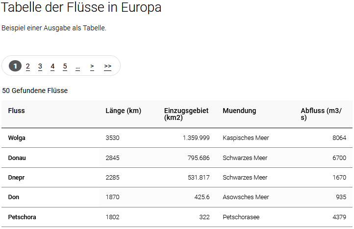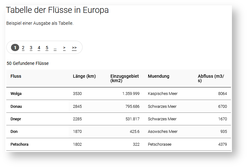 Dieselbe Datengrundlage mit allen Flüssen in einer klassischen Datentabelle.