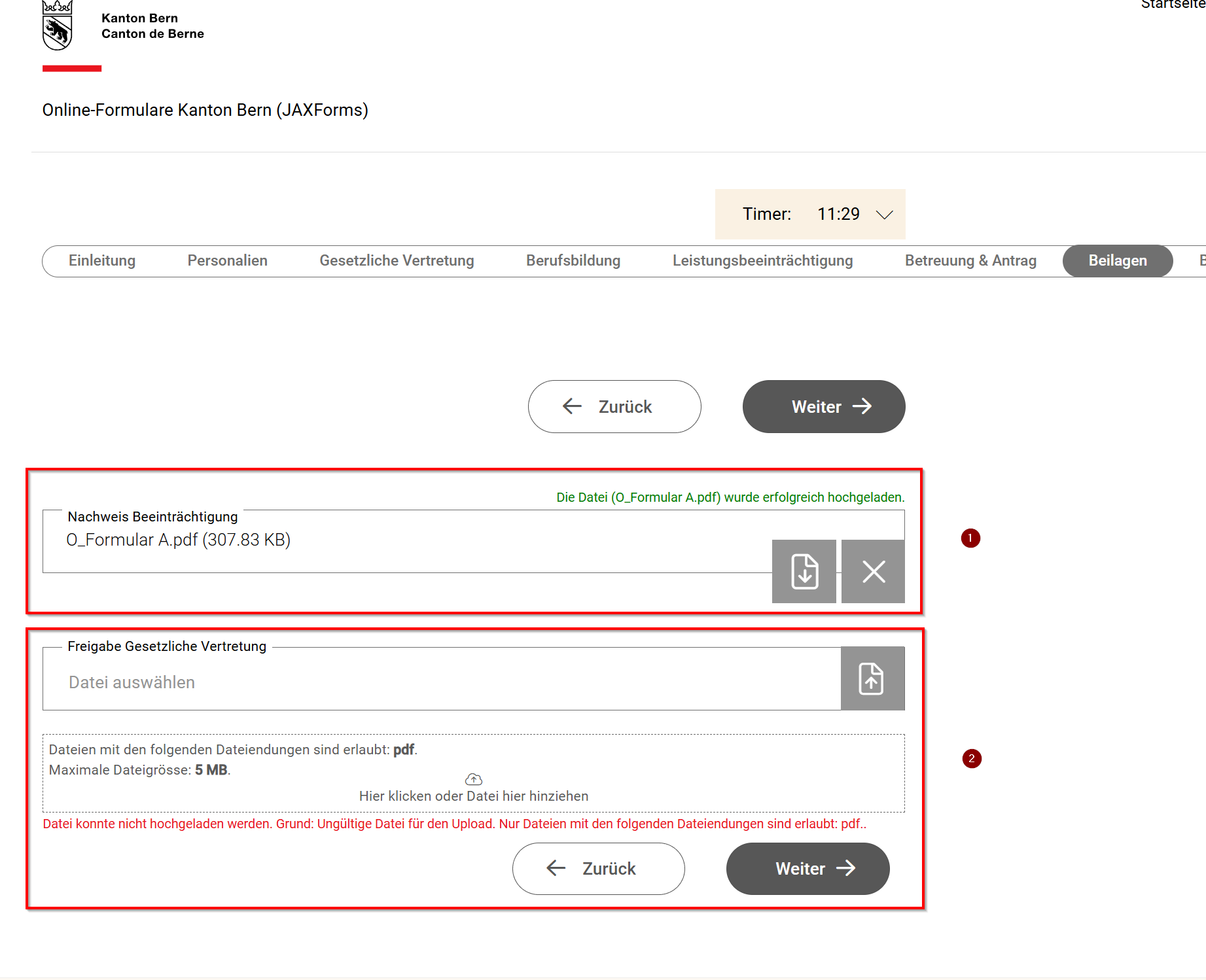 Sind die erlaubten Dateiendungen/Dateigrössen einmal eingestellt, wird dies beim Upload automatisch verprüft (es sind also keine zusätzlichen Einstellungen nötig).