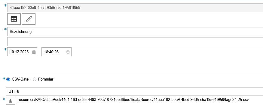 - Details zur bestehenden CSV Datei (stehen je nach Berechtigung nicht zur Verfügung)