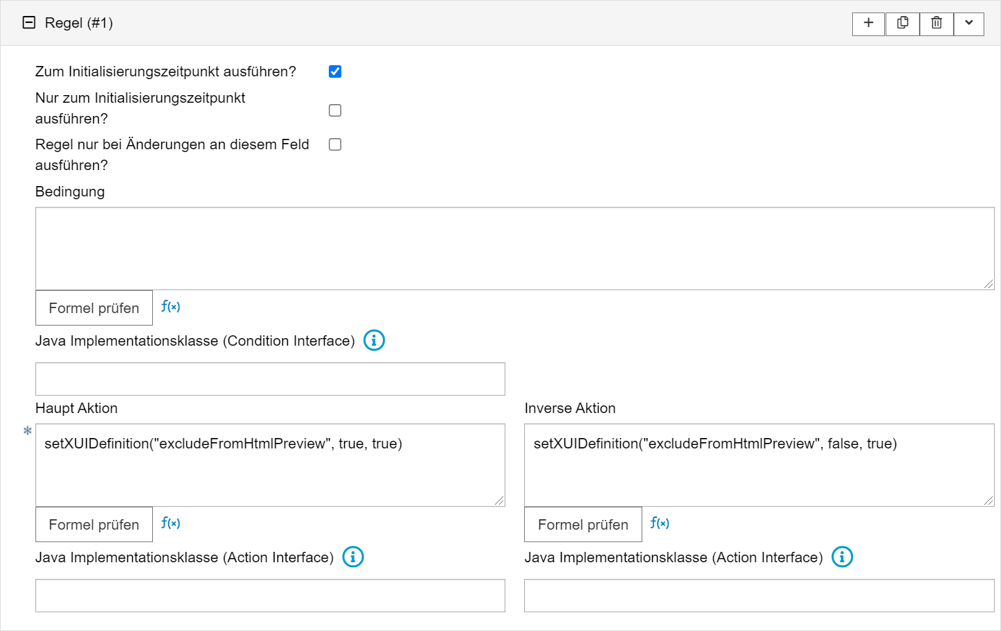 Um ein Element aus der Vorschau ein- oder auszublenden, kann folgende Regeln gesetzt werden.