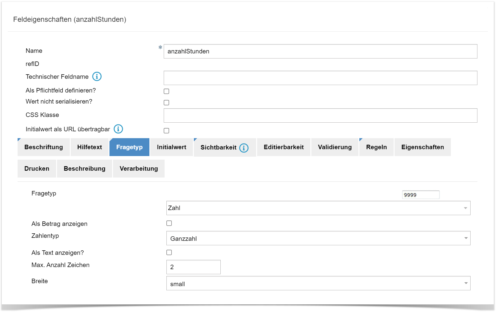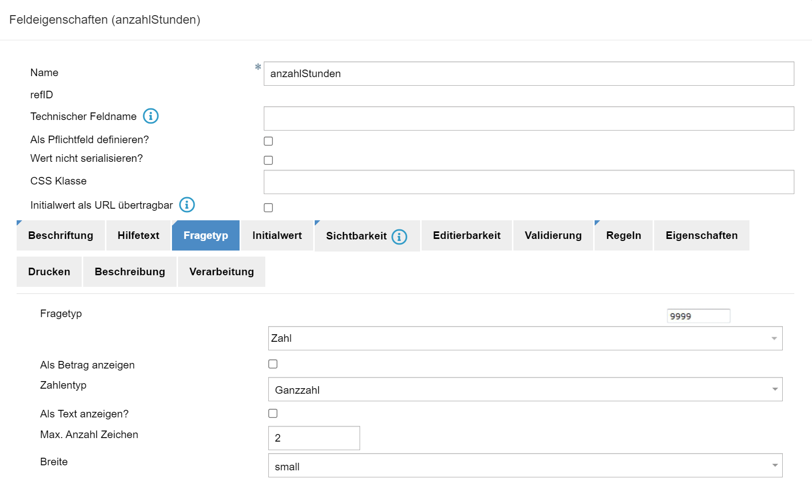 - Feld mit Fragetyp als Zahl erstellen