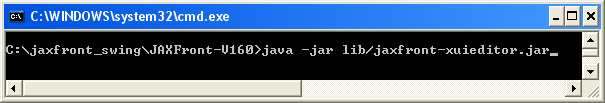 To run JAXFront (XUI-Editor) just start the XUIEditor.bat located in your JAXFront installation directory.