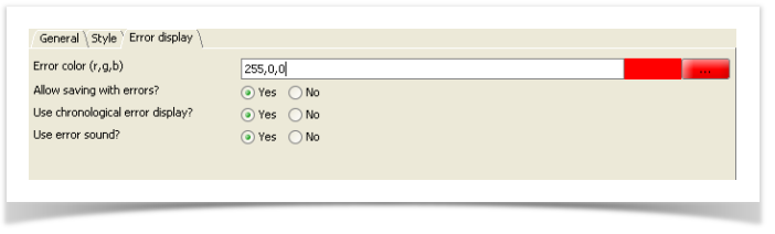 Error color (r,g,b) | 255,0, | Defines the color for error messages. |