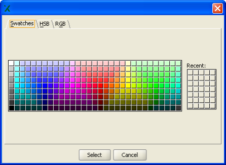 To define a color for a simple component, use the Color selection editor.