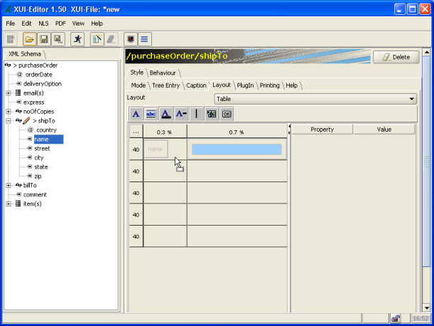 Select the Table option under the Layout tab. The Form Layout editor is displayed.