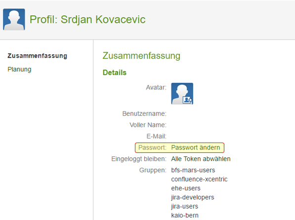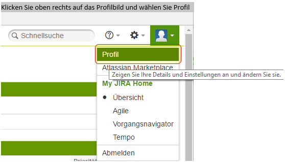 • Um das Passwort zu ändern, müssen Sie ein registrierter und eingeloggter JIRA Benutzer sein.