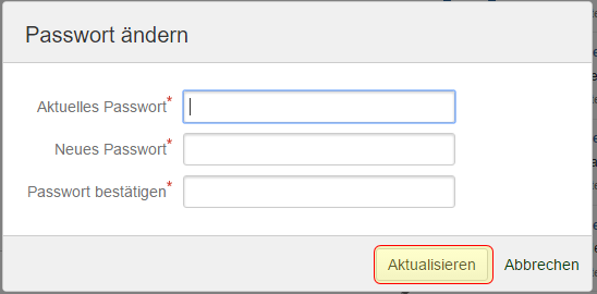3. Geben Sie ihr alten und neues Passwort ein und bestätigen Sie dies mit «Aktualisieren»