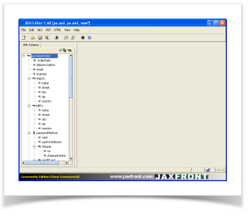 The XML Schema tab enables you to navigate within the XML schema definition, and to modify its individual elements (see 3.2.4). You can expand or collapse the hierarchical levels of the XML schema. To expand the XML Schema tree click the plus sign . To collapse it, click the minus sign
