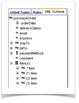 Clicking on the "+" icon will expand the selected XML schema node. Clicking on the "-" icon will collapse the selected node.