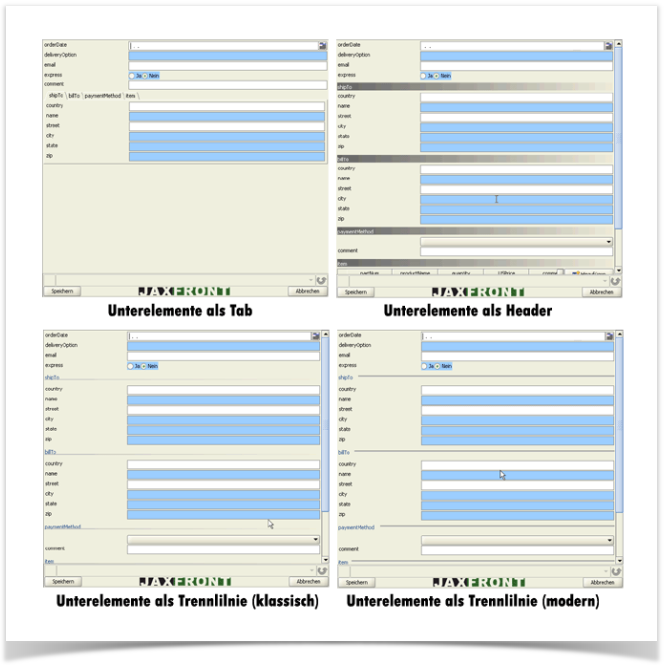 (default) | By default, all sub-components are placed below each other on a panel. At the same time, a border is drawn around each component. |