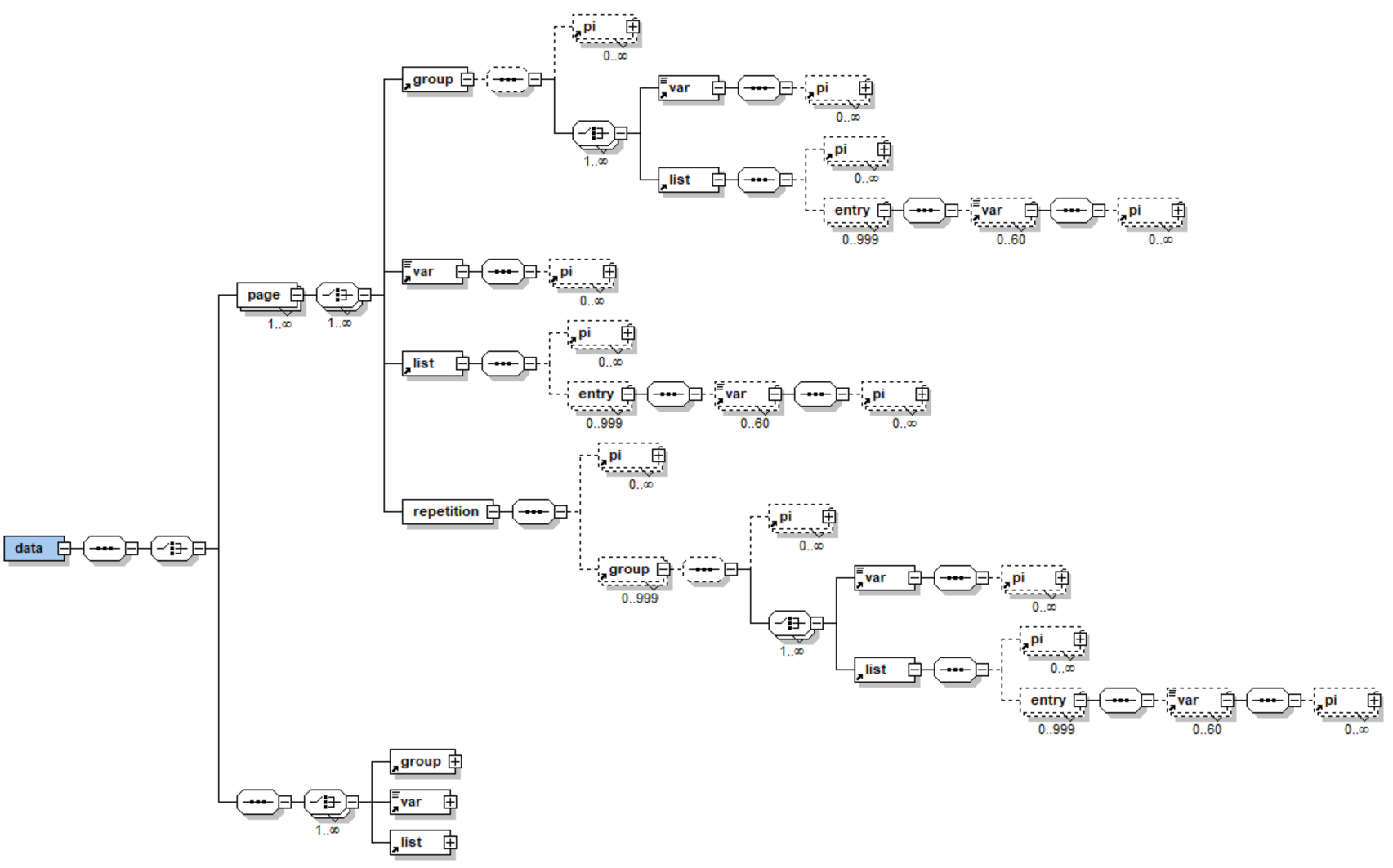 Repetitionen sind Wiederholungen der gleichen Gruppe und werden mit dem Element <repetition> gekennzeichnet. Sie können 0 bis maximal 999 Gruppen beinhalten.